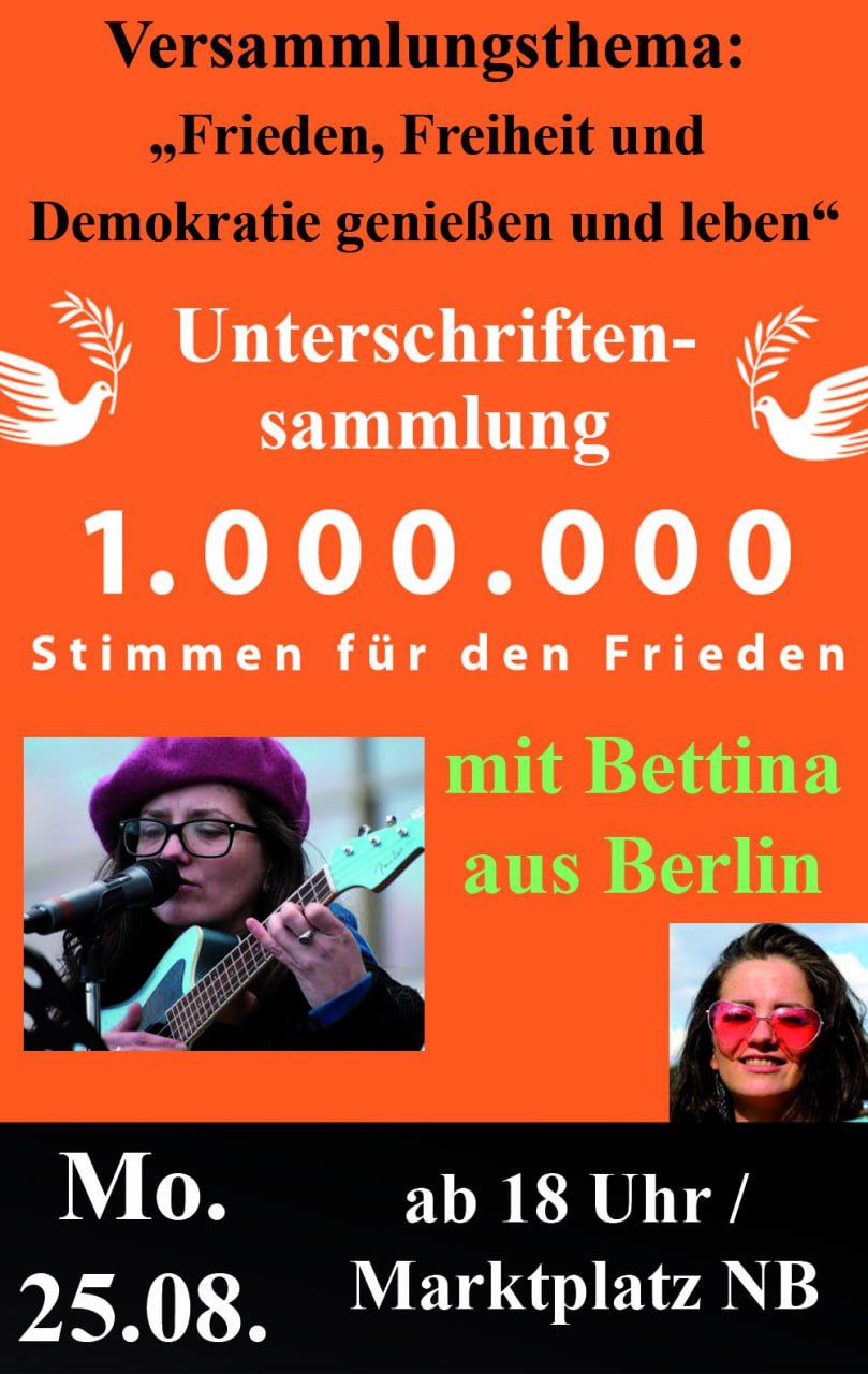 Neubrandenburg ist da ganz vorn mit dabei. Neubrandenburg ist Stand jetzt die zweite Stadt (nach Rostock), in welcher bereits über 1.000 Stimmen für den FRIEDEN gesammelt worden sind.
