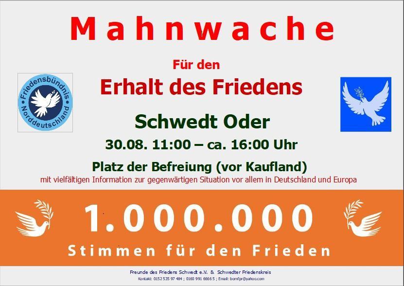Schwedt Mahnwache – 1.000.000 Stimmen für den Frieden – 11.09.2025…
